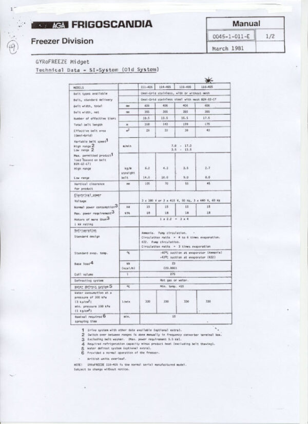 Frigoscandia Midget Spiral Freezer – SOLD