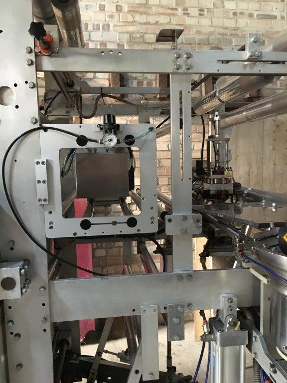 The Bagger is fitted with a Goglio VALVE Applicator for applying one way CO2 valves to the roll of film during the forming of the bags.