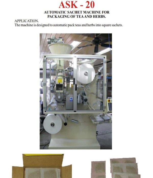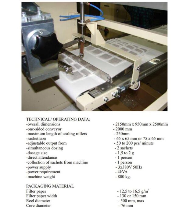 This Tea Bagger is set-up to produce single chamber square tea bags
