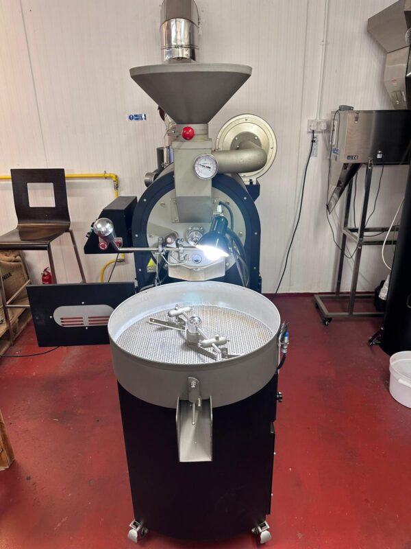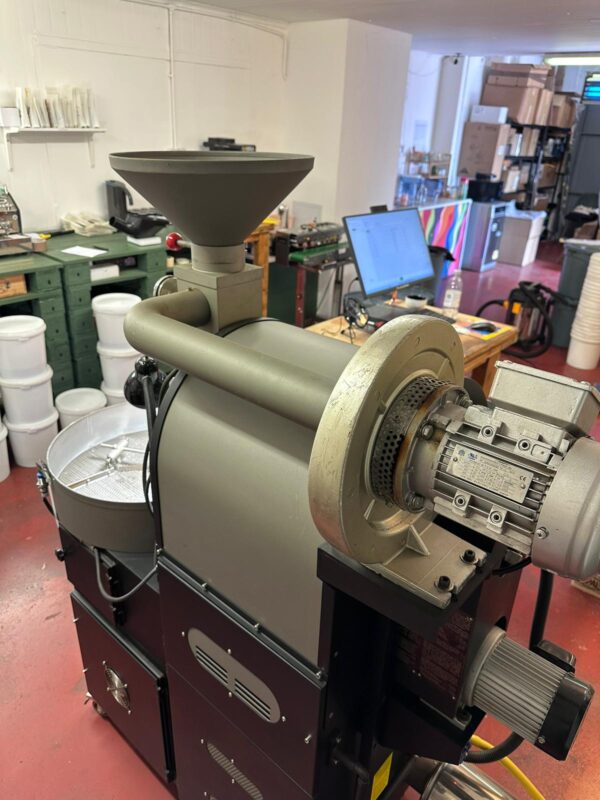 It has been set-up to run on Cropster for roast profiling with three temperature probes for AT, BT and ET and is currently roasting in approx. 8mins 40secs to 10min roasts depending on variety of green bean roasted.