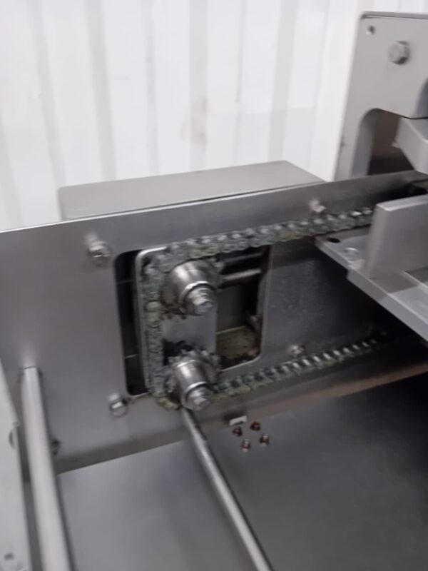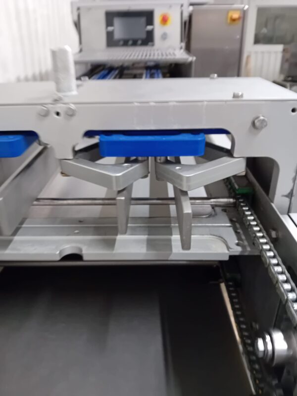 The MPE i-0 is an inline twin lane all electric indexing push bar sealing system. Single point tray guide adjustment for both lanes.