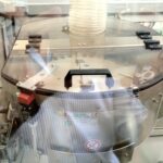 – In the next work station coffee is tamped and the seal area is cleaned from coffee powders. Tamping pressure is adjustable.