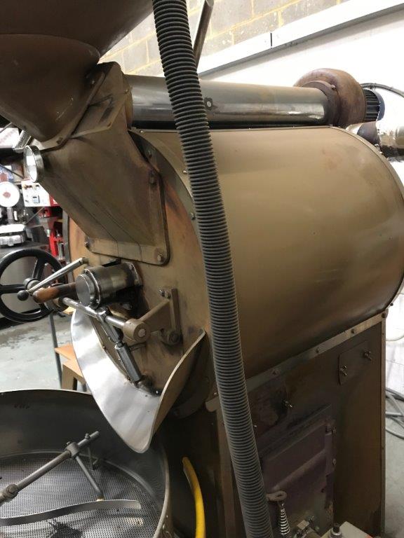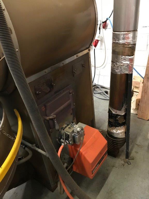 It has an ON/OFF Baltur burner and fire box under the drum for indirect heating and roasting.