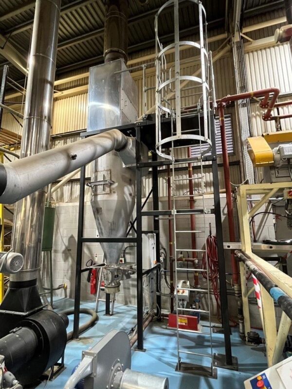 Also includes a Destoner supplied by Giesen which has been extended in height to accommodate a long outfeed conveyor that conveys the beans across the factory to a handling area for storing and packing.