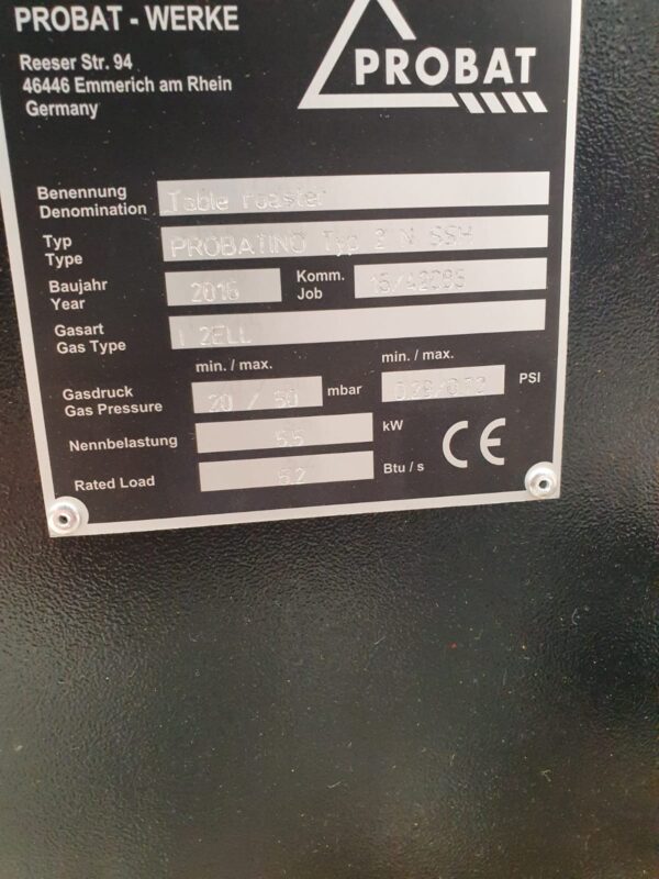 Currently in use, but had very little use since it was purchased new from Probat.
