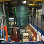 After the roasting process, the roasted beans for each roaster are fed either into Grinders (NOT FOR SALE) and automatically transferred into relevantly positioned ground coffee silos on mezzanine floors above that then automatically feed into one of the packing machines below.