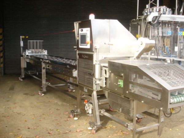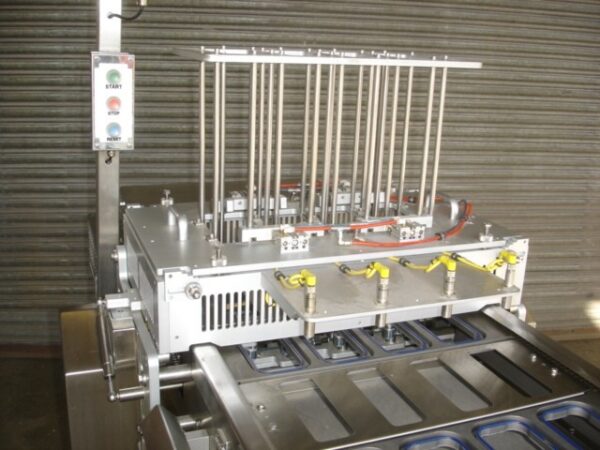 heat sealing station and auto eject station, all mounted on Stainless Steel mobile chasis.