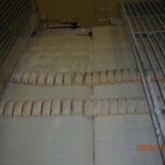 Roll-in conveyor, Stretcher with 90° laminating layering.