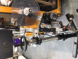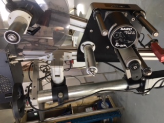 Complete with adjustable (vertical and horizontal) stand to position label aplicator over a conveyor (Not Included) to apply labels directly onto finished product (Bags, containers, boxes etc). With sensor to pick up product positioning.