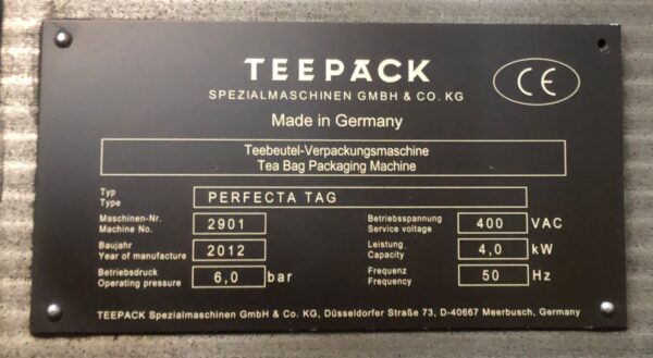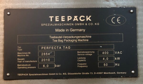 Tea bag machine manufacturer Teepack type PERFECTA