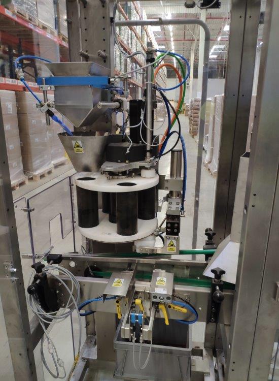 d) Machine construction: Stainless steel with poliamid contact parts