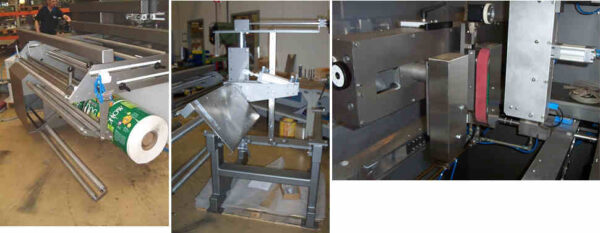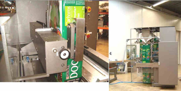 Description: Machine delivered with a bag forming set, rectangular tube, suitable for overlap or fin-seal (standard right over left), for bag width 365mm x 115mm, in stainless steel. One additional adapter for rectangular filling tube for gusset or block bottom. One funnel for format 365 x 115mm.