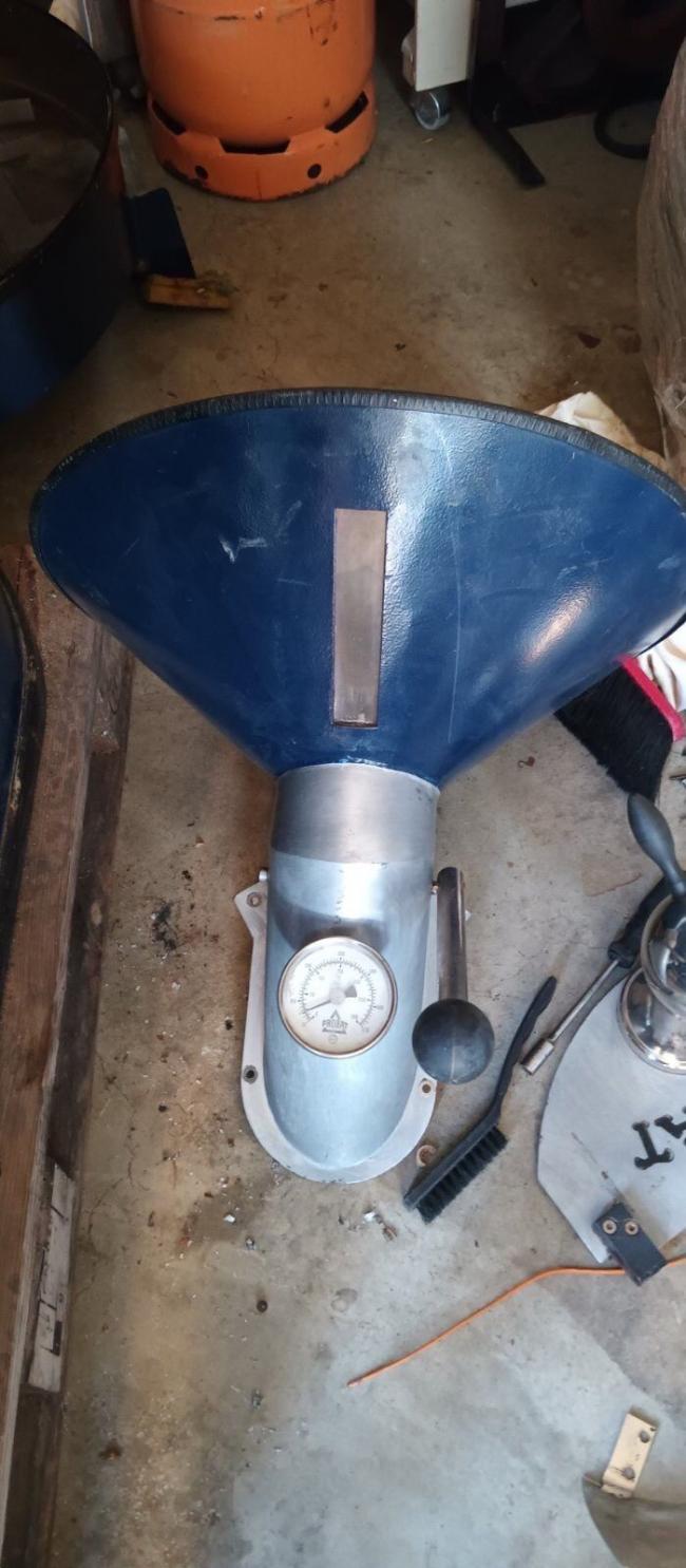 It has a built-in cyclone incorporated in the foot of the roaster, so no requirments for an external cyclone.
