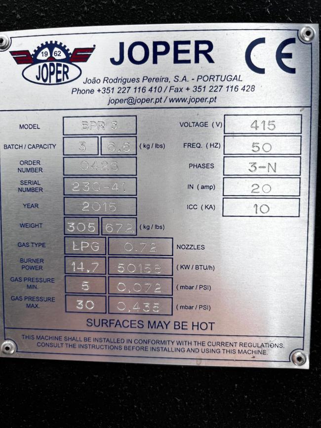 Joper BPR 3 Coffee Roaster for sale